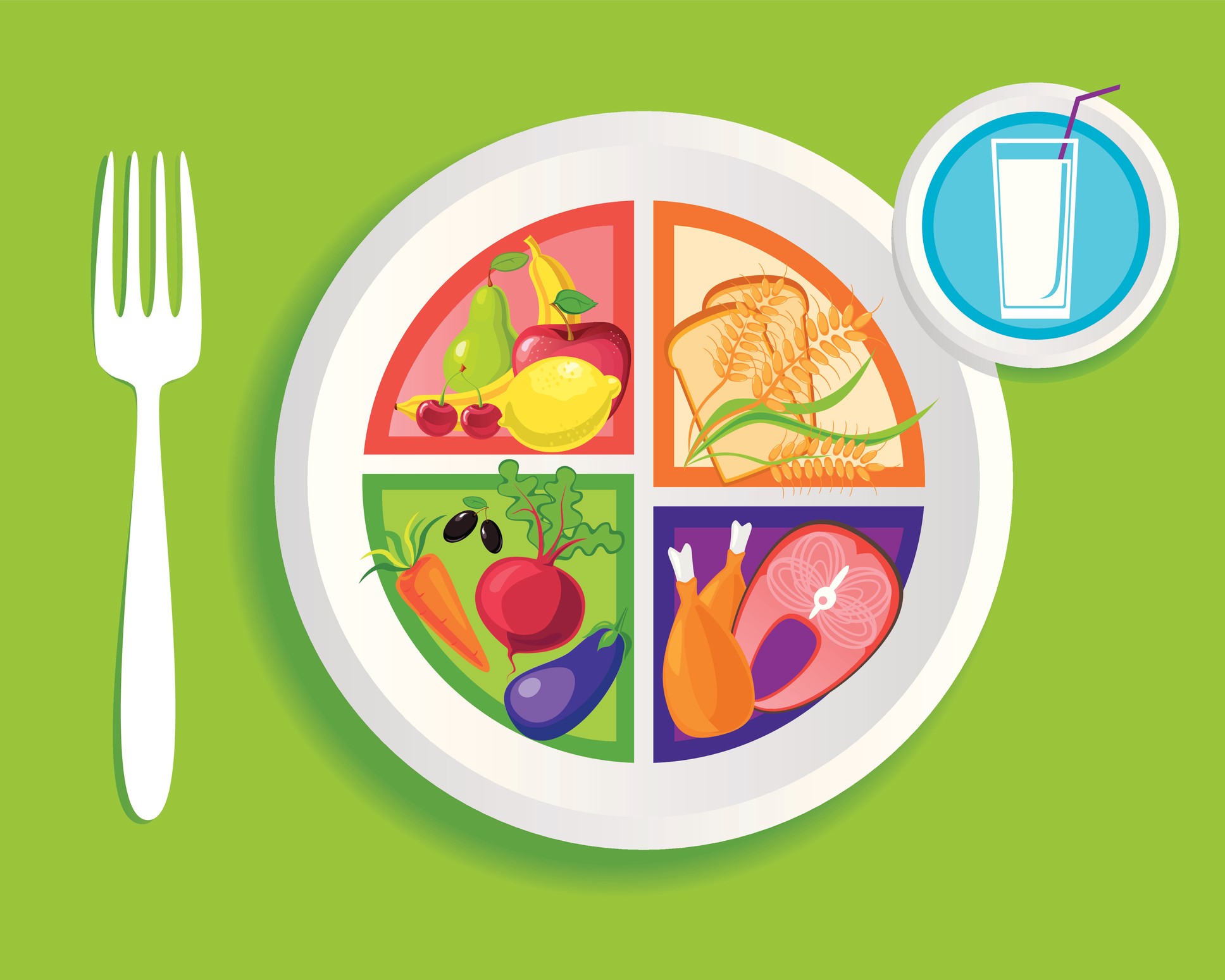 Another foundation of health is exposure to a variety of foods served as part of a balanced meal. The “MyPlate” method was launched in 2011 and replaced the “Food Pyramid” to guide balanced, healthful eating using food groups. The MyPlate method emphasizes small changes that add up over time. This method recommends making half your plate fruits and veggies, choosing more whole grains, including a variety of protein foods, and selecting low-fat or fat-free dairy products or fortified alternatives.